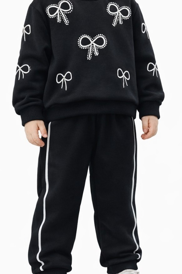 Kurdela nakış ve alt pantolonun yandan çizgili modern duruşu ile kızlarımızın tercihi olucaktır...