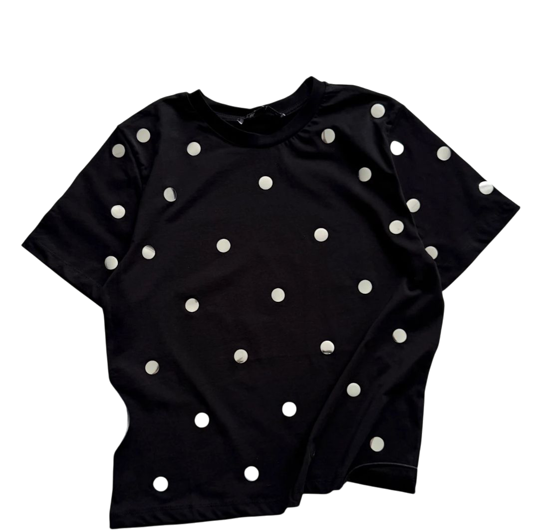 Siyah Tişört Gri Noktalı