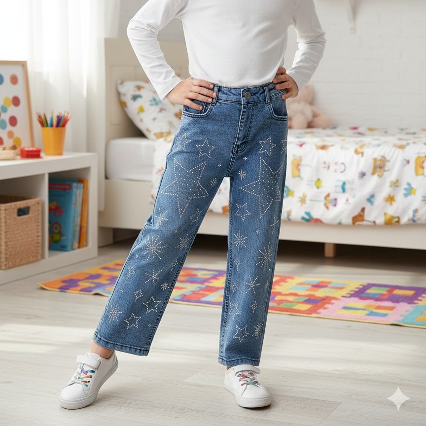 Yıldızlı ve kar taneleri taşlı görseli dikkatleri üzerine çeken Kot pantolodur...